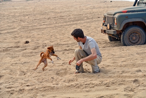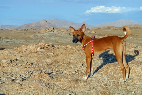 Nach ein paar Ruhetagen in Windhuk fahren wir weiter nach Swakopmund an die Küste des Landes. Hier wird es abends und in der Nacht oft empfindlich kalt. Das Thermometer fällt nicht selten unter zehn Grad. Im Winter kann es hier sogar schneien. Zum ersten Mal seit unserer Abreise kramen wir unsere Jacken und warmen Jeans hervor. Paule leidet sichtbar unter dem Klimawechsel. Schließlich kaufen wir ihm in einem Tiershop ein kleines Hundejäckchen. „Das ist ja echt peinlich!“, stöhnt Loyal, „Hier haben viele Menschen nicht einmal so schöne Sachen und wir kleiden unseren Hund an!“ Immer, wenn ich Paule die Jacke in den nächsten Tagen anziehen will, protestiert Loyal: „Das ist ja total peinlich! Wenn du ihm die jetzt anziehst, dann lässt du ihn aber bitteschön auch im Auto. Was sollen denn die Leute hier denken?“ Paule selbst scheint das neue Kleidungsstück als angenehm zu empfinden. Trotzdem hält es ihn nachts nicht davon ab, zu uns auf die Schlafstelle zu springen und sich zwischen uns zu kuscheln. Er weiß, wo es am wärmsten ist.