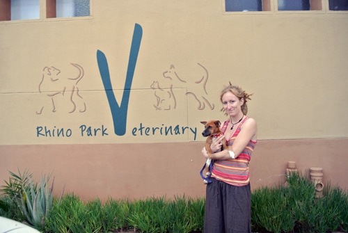 Gleich am ersten Tag machen wir uns auf den Weg zu einer Tierärztin. Wir wollen klären, ob wir noch nachträglich die offizielle Einreiseerlaubnis für Paule beantragen können und uns gleichzeitig das Einreiseformular für Südafrika ausstellen lassen. Die Ärztin Minty ist sehr nett und erweckt gleich unser Vertrauen. Die Praxis unterscheidet sich in der Ausstattung und Hygiene nicht von deutschen Tierarztpraxen. Als wir ihr von Paules Aggressionsanfällen nach dem Kauen eines Knochen berichten, rät sie uns, Paule frühzeitig kastrieren zu lassen. Loyal und ich überlegen nur kurz und melden ihn dann für die gleiche Woche zur OP an. Uns erscheint Namibia das geeignete Land, um diese OP durchzuführen und auch die nachfolgende Heilung zu garantieren.