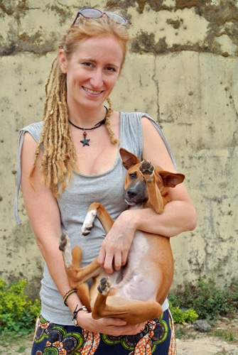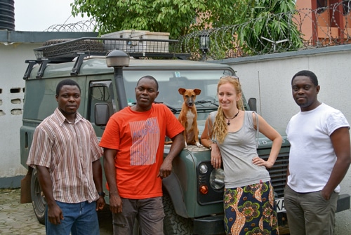 Abends wird die Situation noch etwas komplizierter, weil man sich nach Einbruch der Dunkelheit vom Hostel nicht mehr weiter weg bewegen sollte. Eines Abends, als Loyal mit Paule in „unserer Straße" unterwegs ist und Paule in einer Ecke schnüffelt, spürt Loyal plötzlich, dass jemand dicht hinter ihm steht. Langsam dreht er sich um. Auch Paule ist aufmerksam geworden. Er lässt ein tiefes Knurren ertönen und stellt sich neben Loyal. Etwa einen halben Meter entfernt steht ein Mann. Als er unseren Hund wahrnimmt, murmelt er ein „Good evening" und läuft dann schnell weg. Da es in Westafrika sehr unüblich ist, dass unbekannte Menschen einander auf der Straße so nahe kommen, ist sofort klar, dass der Mann nichts Gutes im Schilde geführt hat. Wahrscheinlich wollte er Loyal ausrauben. Loyal hat noch einmal Glück gehabt, aber trotzdem einen großen Schreck bekommen. Auf direktem Weg kommt er ins Hostel zurück. Paule bekommt eine Extraportion Futter und heißt ab diesem Tag „Wachhund". Wir sind sehr froh, dass wir Paule haben. Wie gut, dass die Einheimischen riesige Angst vor Hunden haben – auch vor so kleinen wie unserem. Wenn wir unser Auto irgendwo parken, lassen wir meistens Paule darin zurück. So können wir sicher sein, dass niemand einbrechen wird. Außerdem ist es allgemein schwierig, Paule in der Stadt irgendwohin mitzunehmen. Da in Afrika überall (vergammelte) Essensreste auf dem Boden herumliegen, ist unser Hund kaum zum Laufen zu bewegen. Vielmehr schnüffelt er überall herum und frisst alles, was er finden kann. Leider führt das bei ihm immer wieder zu Magenbeschwerden. Häufig muss er hinterher auch erbrechen. Irgendwie stellt er aber leider nie den Zusammenhang zu dem her, was er vorher gefressen hat. Auch aus diesem Grund sind wir froh, wenn wir ihn im Auto lassen können.