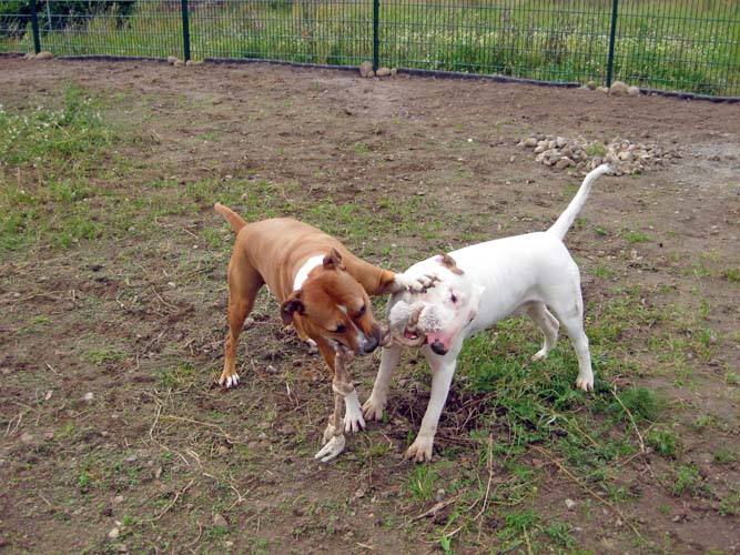 Der alte Gehrmann war nach dem Tod von Lulu wieder Witwer geworden. Doch sollte eine neue Partnerin für ihn zugleich auch meinen Schmerz lindern helfen, so wie es Lulu vermocht hatte, nachdem das Wilmchen über die Regenbogenbrücke gehen musste. Lulu stammte wie ihre Vorgängerin aus dem Tierheim. Doch während Wilmy dort nur wenige Monate verbringen musste, waren es bei Lulu – mit kurzen Unterbrechungen – ganze acht Jahre! Ihre langjährige Betreuerin hatte die Pitbull-Hündin aus Frankfurt zu uns nach Schleswig-Holstein kutschiert. Zum Abschied beschwor sie mich noch, „Wenn es nicht klappen sollte, hole ich sie nächstes Wochenende wieder ab."