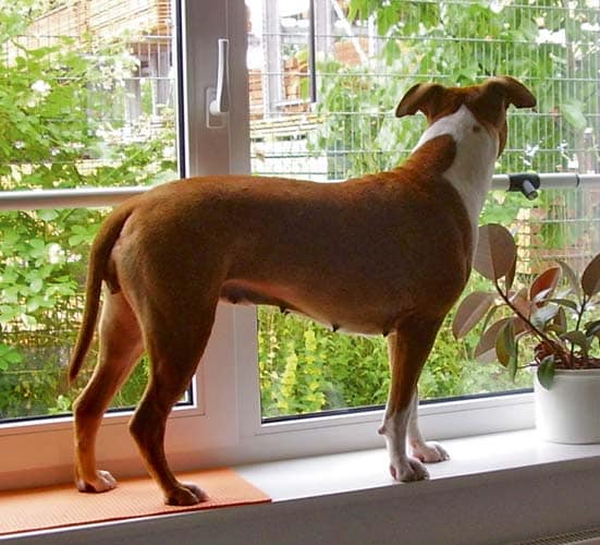 Die Hündin nach entsprechender Vorbereitung zu Trainingszwecken im Park anzubinden, um sich schrittweise von ihr zu entfernen, bewirkte ein brüllendes Etwas, das sich kaum beruhigen ließ. Es dauerte gefühlte Ewigkeiten, bis sie mir vertraute.