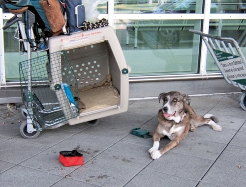 Am Münchner Flughafen versuche ich meine Nervosität vor Vega zu verbergen, mir ist gar nicht wohl! Nachdem wir die Box durch die Röntgenanlage gelassen haben, werden wir mit Sicherheitspersonal zum Aufzug geleitet. Ohne Zögern steigt Vega in die Box. Als sich die Tür schließt – meine Augen werden glasig, ich brauche einen Schnaps!