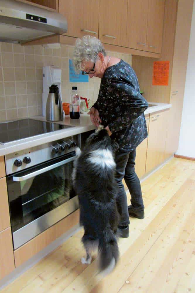 „Kleine Hunde tun sich schwerer etwas aus höheren Regalen zu holen. Große Hunde sollten keine skelettalen Probleme im Bewegungsapparat, wie z.B. HD (Hüftgelenksdysplasie) oder ED (Ellenbogendysplasie) haben“, erklärt die auf den Rollstuhl angewiesene Petra L. über geeignete Hunde.