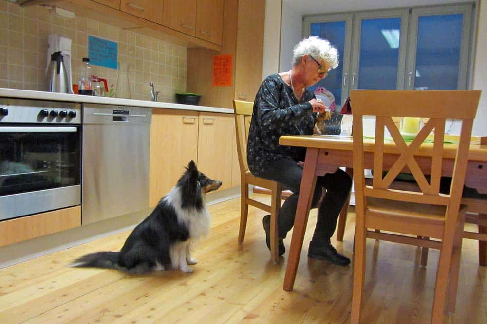 Susanna Weber-Kühnlein ist gehörlos und sagt über Signalhunde: „Der Hund sollte mich immer im Auge und seine Umwelt immer im „Ohr“ haben. Er sollte mich ja sofort aufmerksam machen, wenn z.B. der Timer vom Backofen piepst oder das Wasser im Wasserkocher kocht“.