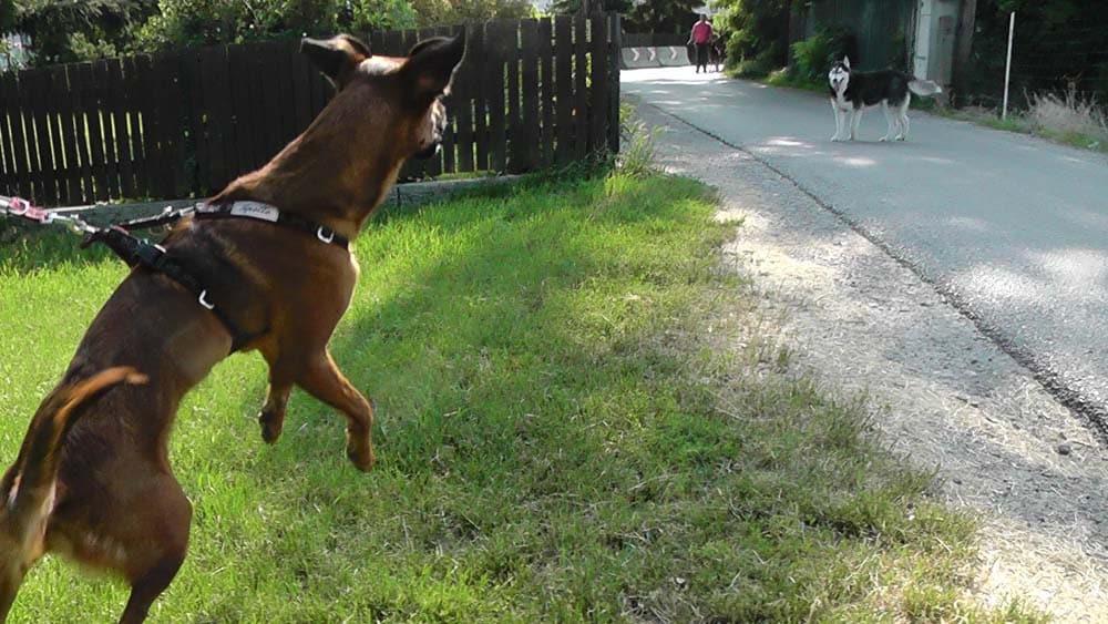 • Treffen auf fremde Hunde während dem Spaziergang: Ruhiges Ausweichen bringt langfristig ruhiges und adäquates Sozialverhalten.