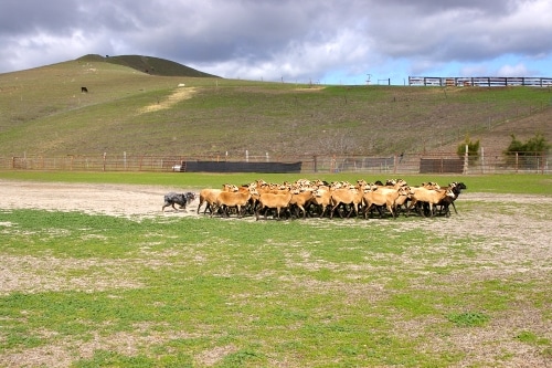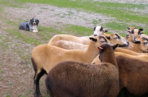Der Aussie hütet ALLES, egal ob Schafe, Kühe, Enten, Hühner oder Meerschweinchen. Das „Hütematerial“ sollte nur von einer gewissen „Robustheit“ sein. Im Gegensatz zum Border Collie, der ja hauptsächlich mit den „Augen hütet“, zeigt der Aussie bei seiner Arbeit doch schon mal mehr „vollen Körper- und Zähneeinsatz“.