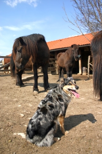 In seinen „Heimatländern“ (ganz bewusst in der Mehrzahl!) ist der Aussie noch immer Hüte-Spezialist. Ob seiner Vergangenheit in den USA ist er natürlich auch in Europa DER Reitbegleithund Nummer 1. Entgegen der allgemeinen Meinung ist er aber dafür nicht besser geeignet als der Border Collie, da der Aussie ebenfalls zu diesem übertriebenen Hüteverhalten neigen kann, das Pferde sehr nervös machen kann, und im ungünstigsten Fall dazu noch ununterbrochen bellt und zwickt. Leider hat ja die FCI diese Rasse inzwischen auch anerkannt, und schon ruft das die Geldmacher auf den Plan. Es wird mittlerweile eine Showlinie ausgezüchtet, die absolut nichts Gutes verheißt. Noch nie hat eine Showlinienzucht der betroffenen Rasse etwas Gutes gebracht, nur Krankheiten und Degeneration (siehe Deutscher Schäferhund).