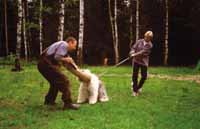 Die Befürchtung, dass der Bobtail als die Rasse für den „Schutzdienst" entdeckt werden könnte, teile ich nicht. Zum einen ist er viel zu pflegeintensiv, zum anderen ist er von der Triebveranlagung viel zu ruhig, als dass er vom reinen Gebrauchshundesportler entdeckt wird. Er ist beim sogenannten Schutzhundesport ein Exote und wird es bleiben, ein „Ärmellutscher" oder „Ärmelzupfer". Ich bin daher der Meinung, dass weder meine Hunde noch der Ruf des Bobtails durch meine hundesportliche Betätigung Schaden nehmen.