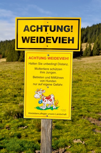 Viele der schönsten Wanderungen in den Alpen führen über Almen, die im Sommer, von Juni bis Ende September, von Weidevieh genutzt werden. Immer wieder kommt es dabei zu unliebsamen Zwischenfällen mit Hunden, welche vor allem von Muttertieren als Bedrohung ihres Nachwuchses angesehen werden.