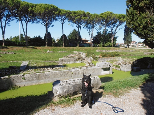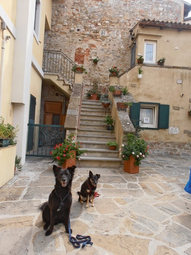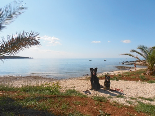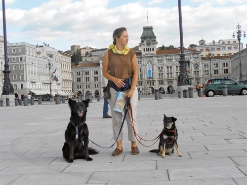 Am nächsten Morgen ging es über den Predil-Pass nach Slowenien. Weiter nach Italien schmunzelten wir über die Routenansichten unseres Navigationsgeräts. Daher fragten wir die Einheimischen um Rat. „Die alte Dame" sagte „rechts", die Straßenschilder meinten „links", und mein Mann fuhr gerade aus. Irgendwann landeten wir in Gorizia. Beim Stellplatz angekommen, begrüßten uns gleich mal die italienischen Hunde. Leben pur! Wir leinten unsere Hunde an und bummelten in die Stadt. Zehn Minuten später standen wir schon in der Fußgängerzone. Wir wanderten zur Burg hinauf und genossen einen tollen Ausblick auf die alte österreichische Garnisons-Stadt Görz. Sehr zufrieden schlenderten wir zurück zum beleuchteten Parkplatz und ich freute mich darüber, überall so viele Hunde zu sehen. Die Italiener sind offenbar doch gar nicht so hundefeindlich, wie oft behauptet wird.