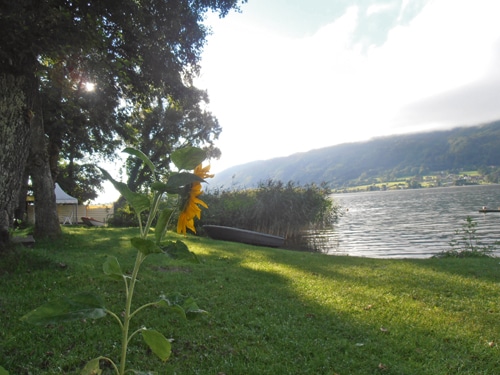Letzten Sommer wollten wir dann doch auch wieder etwas anderes sehen und verbrachten eine Woche in einem Ferienhaus in Vallon Pont d‘Arc in Südfrankreich. Aber wir wollten auch wieder mal in einem Zelt schlafen und fuhren an den Ossiachersee in Kärnten, wo wir eine Nacht auf dem Campingplatz Morgenfurt (www. camping-morgenfurt.at) blieben. Der Platz ist klein, sehr sauber, der Betreiber war sehr freundlich und Hunde sind dort gar kein Problem, sie dürfen nur leider nicht in den See hinein. Nach einigen Ausflügen fuhren wir weiter nach Bibione an den Hundestrand. Eigentlich wollten wir noch in Italien im Kanaltal einen Zeltplatz suchen, aber da es in der Nacht geregnet hatte und alles nass war, verzichteten wir darauf und fuhren nach Villach.