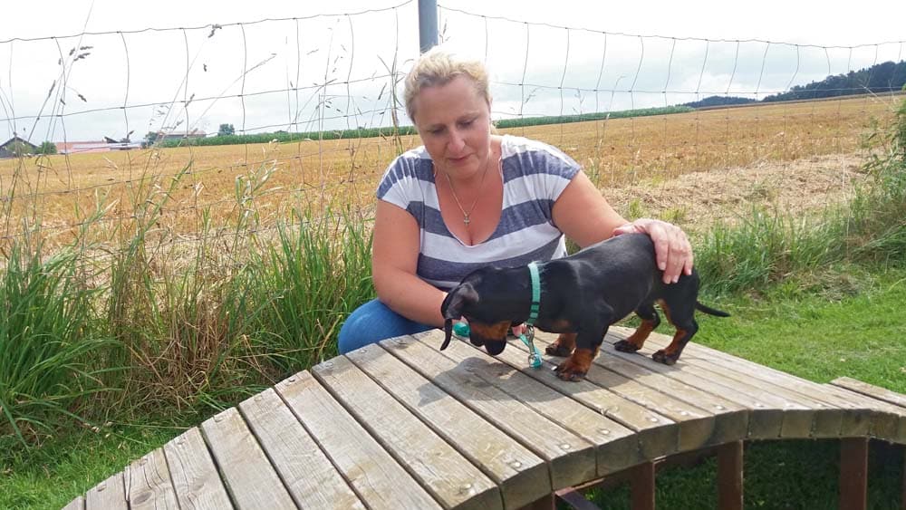 Heidi Vogel besucht mit ihrem Dackel-Mädchen Maja die Welpenschule im Hundesportverein „Hundefreunde Cham“. Wenn der Welpe von Anfang an gefördert wird, dann klappt es auch mit der Erziehung. Heidi Vogel sagt über Maja: „Wir haben keine großen sportlichen Ambitionen. Trotzdem muss Maja eine gute, fundierte Grundausbildung erhalten und ein souveräner Familienhund werden. Schließlich soll sie, so weit möglich, überall dabei sein und uns auch in den Urlaub begleiten.“