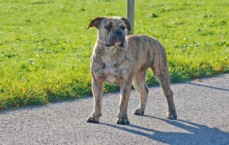 Es soll also durch Einkreuzung verwandter, ähnlicher Typen eine neue und vor allem gesunde Bulldog-Rasse kreiert werden. Einige für die Einkreuzung in Betracht kommende Rassen scheiden nach reiflicher Überlegung aus verschiedenen Gründen aus. In Frage kommt schließlich nur noch der Olde English Bulldog. Was ist das nun für eine Rasse?