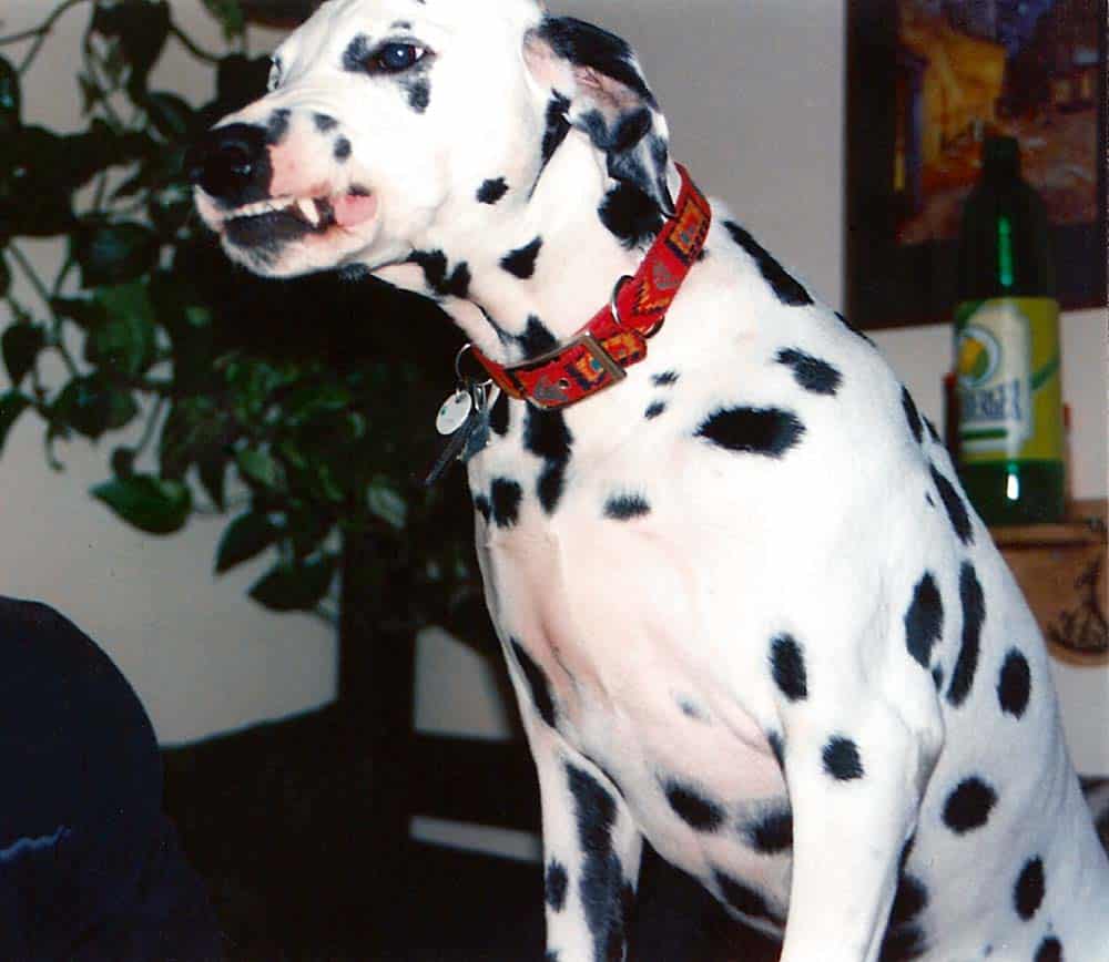 Alle, die einen Dalmatiner kennen, wissen: er kann „lachen“: Er zieht seine Nase kraus, die Lefzen zurück und „grinst“ uns mit leuchtenden Augen an! Ich wünsche mir, dass unseren Getupften nie das Lachen vergeht, weil sie als schönes Prestigeobjekt gehalten werden, sondern dass sie für ihre Liebenswürdigkeit und Urtümlichkeit geliebt und auch verstanden werden.