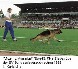 Mein erster richtiger Hund war Schauzucht. Er war einer von den Sicheren, die zu dumm zum Weglaufen sind. Schlecht war er nicht, aber sein Triebdefizit brachte ihm auch eine Bauchspeicheldrüsenfehlfunktion ein, die man natürlich erst im Nachhinein als solche realisiert. Zu der Zeit kannte ich dieses Problem nicht und erst mit der Zeit erfuhr ich, dass auch dieses Problem in Fachkreisen Alltäglichkeit und in SV-Kreisen nicht existent ist. Nachdem ich 1979 mit diesem Hund den Bundessiegertitel errungen hatte, war ich an dem Punkt, wo ich aus ethischen Gründen den Hundesport aufgeben wollte. Für mich stand fest, dass ich solch eine armselige Vergewaltigung der Kreatur Hund nie wieder durchführen werde. Den Hund nahm ich danach aus der Arbeit, er ist dann mit 11 Jahren auf natürliche Weise gestorben. Ohne die Ausbildung hätten wir nie die enge Bindung gehabt.
