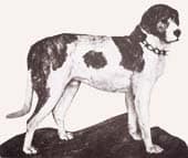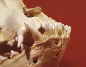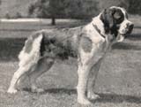 Besonders eindrucksvoll ist der Rassenwandel beim Bernhardiner. Der berühmte Barry (Abb.) war zwar ein großer, aber normal gebauter und beweglicher Hund, der rund 15 Jahre alt wurde. Derart hochbetagte Bernhardiner sind heute kaum noch zu finden. Die ersten Hunde, die um 1660 als Wachhunde aufs Hospiz kamen, waren sog. „Küherhunde" aus den Walliser-Tälern. Es waren relativ große Hunde, deren Schädel nur unwesentlich vom Schädel eines Grauwolfes abwichen (Küherhund). Der Schädel des berühmten Barry zeigt nun schon eine deutliche Verkürzung des Oberkiefers, doch der Zahnschluss ist noch normal. Einsichtige Züchter, wie z.B. Heinrich Schuhmacher in Bern, wollten am alten Barry-Typ festhalten. Doch die Engländer, die damals horrende Preise für einen Bernhardiner bezahlten, kreuzten schwere Mastiffs ein, um Hunde mit möglichst „ausdrucksvollen" Köpfen zu erhalten, und damit setzte eine unerwünschte Schädeldeformation ein. Der Stopp wurde ausgeprägter, das Nasenbein immer kürzer und der Vorbiss immer ausgeprägter. Die Gegenüberstellung des Barryschädels mit dem Schädel eines modernen Hundes veranschaulicht, wie weit sich der heutige Bemhardiner vom alten Typ entfernt hat. Dass damit schwerwiegende Deformationen im Kieferbereich vorprogrammiert waren, nahmen die Züchter in Kauf. Die Zahnverankerung wurde schlecht, und bei extremer Verkürzung des Nasenbeins kam es zu einem unverhältnismäßigen Vorbiss.
