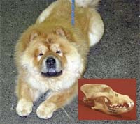 Ein gutes Beispiel dafür ist der Chow Chow. Noch in den dreißiger Jahren hatte der Schädel eines Siegerhundes einen ernsten aber sympathischen Gesichtsausdruck. Ab 1950 wird der Schädel des Chow Chows sichtbar kürzer (Abb.), und damit ging eine wesentliche Veränderung des Gesichtsausdrucks Hand in Hand. Auch wenn man mir seitens eines Chow Chow-Richters attestiert hat, ich verstünde von Hunden nicht viel und insbesondere vom Chow Chow schon gar nichts, so wage ich doch zu bezweifeln, ob der Hund in der Abb. mit der Interpretation der Standardforderungen „Ernster Gesichtsausdruck" einverstanden ist.