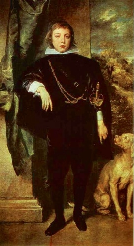 Anthonis van Dyck (1599 – 1641) hinterließ uns ein Gemälde des Prinzen Rupert von der Pfalz aus dem Jahr 1631, auf dem neben dem Prinzen ein grauer Hund sitzt. Ob es sich hierbei schon um DEN Weima­raner handelt, wie wir ihn heute ­kennen, kann man nicht mit Sicherheit sagen. In Größe, Typ und Optik kommt der gemalte Hund dem modernen Weimaraner sehr nahe. Wie bei allen Rassen spielte damals die Fellfarbe der Jagdgebrauchshunde bei der Zuchtauswahl keine große Rolle. Selektiert wurde ausschließlich auf ­Arbeitsleistung. Aus diesem Grund gibt es auch keine wirklich aussage­kräftigen Hinweise, ob zu dieser Zeit schon gezielt graue Hunde ­gezüchtet wurden. Auffällig ist aber, dass alle Herkunftstheorien des ­Weimaraners in engem Zusammenhang mit Königs-, Fürsten- und ­Herzogshäusern stehen.