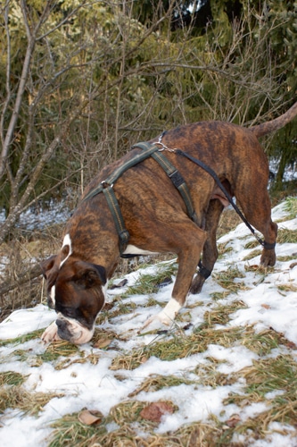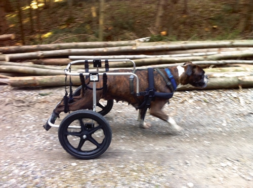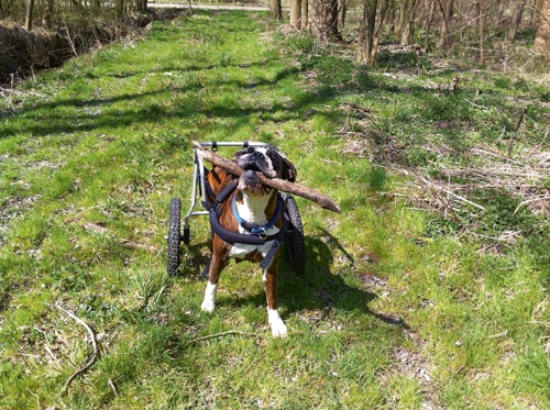 Die ersten Märztage bringen den Abschluss der vollständigen Lähmung der Hinterextremitäten. Der Einsatz des Expanders brachte schon seit einiger Zeit keine wirkliche Erleichterung mehr, und so entscheiden wir uns für einen Rollwagen, der Aurora ein bedeutendes Maß an Mobilität zurückgeben wird und der uns vor allem auch wieder die Möglichkeit zu ausgiebigen Spaziergängen und abwechslungsreichen Unternehmungen außerhalb unseres Grundstücks gibt.