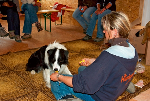 Achtung: Hütehunde begreifen diese Übung zumeist rascher als andere Rassen. Verzweifeln Sie daher nicht, falls Ihr Liebling mehrere Wochen für das Einüben benötigt.