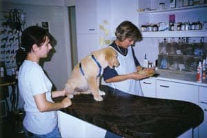 Die Therapie der Bauchspeicheldrüsen-Entzündung gehört – ebenso wie die Diagnose – in die Hand eines Tierarztes. Behandlungsversuche durch den Besitzer können dem Hund unnötig Leid verursachen und sogar das Leben des Tieres gefährden. Bemerkt der Hundebesitzer Krankheitszeichen bei seinem Tier, wie sie im Kasten auf der linken Seite erwähnt sind, sollte er sofort seinen Tierarzt aufsuchen. Wenn dieser nach seinen diagnostischen Maßnahmen zum Schluss kommt, dass eine Bauchspeicheldrüsen-Entzündung vorliegen könnte, besteht seine Ersttherapie zunächst aus drei Grundpfeilern, wie Dr. Spillmann aus Gießen auf der kürzlich in Salzburg durchgeführten Jahrestagung der Vereinigung Österreichischer Kleintiermediziner ausführte (siehe auch Bericht über Durchfallerkrankungen in WUFF 11/03):