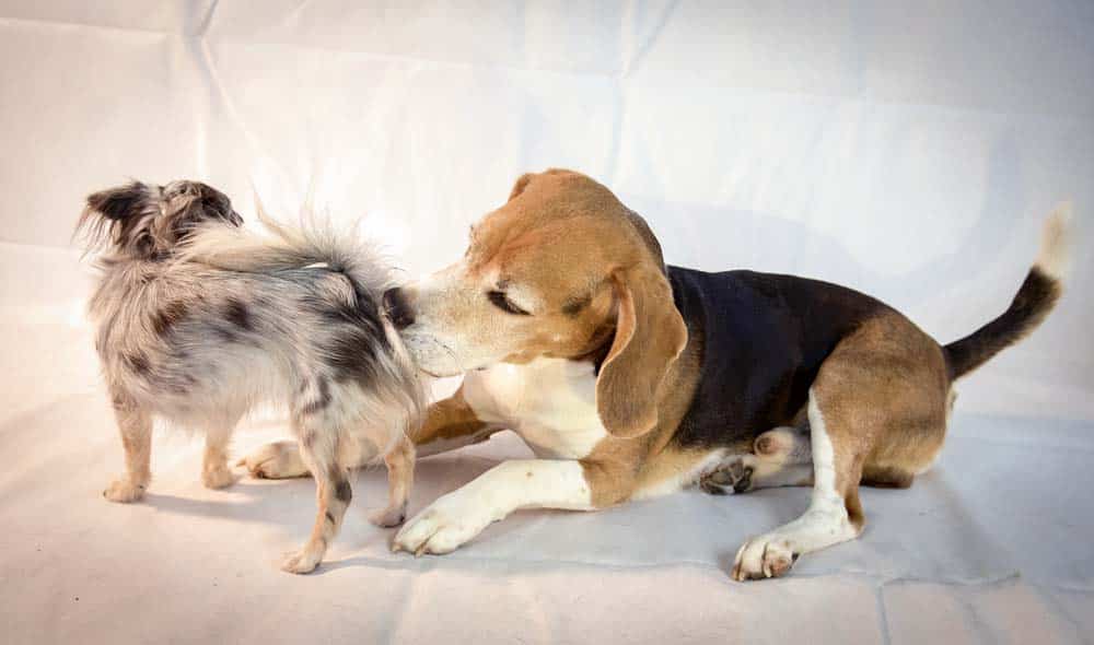 Anders aber das Verhalten anderen Hündinnen gegenüber: damit, dass potentielle Konkurrentinnen in dieser Zyklusphase nicht unbedingt freundlich behandelt werden, muss man als Halter rechnen. Je länger der Proöstrus dauert, desto mehr synchronisieren Rüde und Hündin ihr Verhalten. Es wird dann nicht nur vermehrt gespielt, sondern auch paargelaufen, die Öhrchen werden liebevoll abgeschleckt etc.