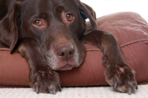 Ein klassisches Merkmal bei hypothyreoten Hunden ist auch der „traurige Blick", der den Besitzern oft auffällt. Das ist keineswegs Einbildung, denn es kommt tatsächlich zu Wassereinlagerungen unter der Haut, besonders um die Augen, wodurch dieser traurige Blick entsteht. Vom Verhalten her zeigen sich Hunde mit einer klinisch manifesten Hypothyreose sehr reduziert bis apathisch, sind nicht besonders belastbar und schnell erschöpft.