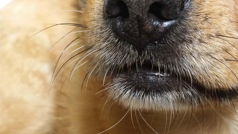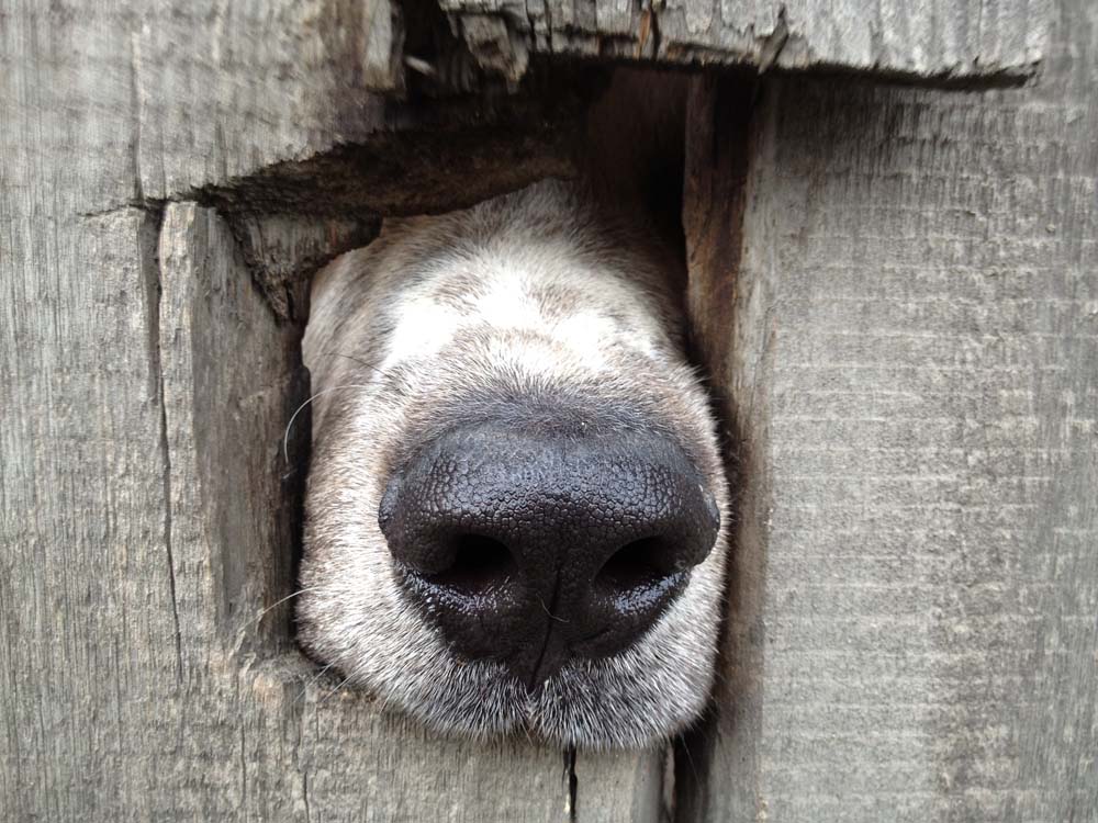 Betrachtet man die Geruchsfähigkeit des Hundes, fällt auf, dass im Unterschied zur menschlichen Nase die eintretende Luft auf direktem Weg die Riechschleimhaut erreicht und kaum Geruchsinformationen verloren gehen. Kleine Knorpel in der Naseninnenwand sorgen dafür, dass Atemluft direkt als Sauerstoffzufuhr in die Lunge gelangt oder feinste Duftstoffe genauer analysiert und identifiziert werden. So ist es dem Hund beispielsweise möglich Käsesorten bis ins kleinste Detail oder nach Reifegrad zu unterscheiden. Zudem ist der Hund in der Lage stereo zu riechen. Das heißt, die in das linke und rechte Nasenloch einströmenden Duftmoleküle werden individuell verarbeitet und auch ein „Richtungsriechen“ ist möglich, so dass ein Hund eben genau in der richtigen Richtung eine Person verfolgen und suchen kann. Damit diese Flut an Duftstoffen verarbeitet werden kann, befinden sich über 200 Millionen Zellen in der Nase, die den Riechvorgang unterstützen. Hunde mit sehr kurzen Nasen wie Mops, französische Bulldogge und ähnliche Rassen können durch anatomische Veränderungen beschriebene Riechleistung nicht so erreichen wie Hunde mit langer Schnauze, dennoch sind sie uns Menschen haushoch überlegen. Die Nase zählt zu dem effektivsten Sinnesorgan des Hundes. Rüden können läufige Hündinnen bis zu einer Entfernung von mehreren Kilometern riechen.