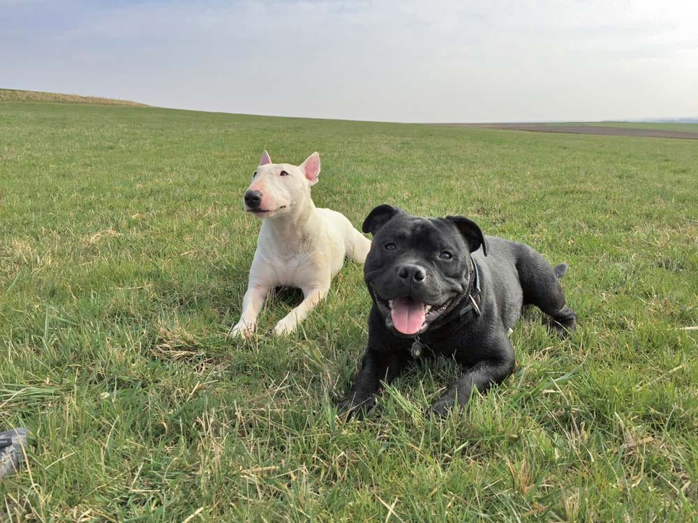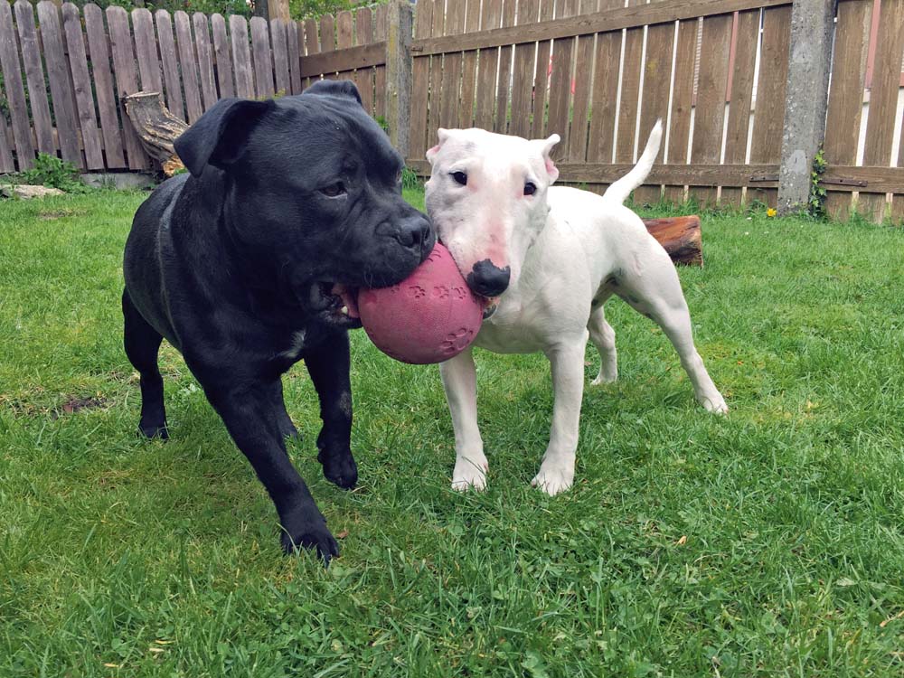 Andreas Renner über Kira und Daddy: „Beide Hunde kamen als Welpe vom Züchter zu mir. Kira ist inzwischen 5 Jahre, Daddy ist 1,5 Jahre alt. Wenn wir essen, ist der Tisch bei uns Tabu-Zone. Couch-Kuschel-Stunden genießen wir jedoch sehr und auch das Bett wurde extra wegen den Hunden im XXL-Format angeschafft. Wir genießen das alle. Meine Hunde haben unendliches Vertrauen zu mir und lassen sich von mir und meiner Tochter im Notfall alles wegnehmen. Dieser Punkt war für uns sehr wichtig. Konflikten mit anderen Hunden gehen beide aus dem Weg. Daddy ist eher Schlichter als Konfliktsucher und Kira hat mit anderen Hunden einfach nicht so viel am Hut, ihr sind Menschen als Sozialpartner eindeutig wichtiger. Der Aussage „Terrier sind dominant“ im negativen Sinne muss ich widersprechen. Meine zwei und Hunde derselben Rassen aus meinem Bekannten- und Freundeskreis sind eher sehr sensibel und feinfühlig. Dominanz wird noch immer zu häufig mit Aggression in einen Topf geworfen. Leider ernten wir aufgrund der Rassezugehörigkeit von Kira und Daddy häufig „schräge“ Blicke. Das stecken wir jedoch leicht weg, weiß ich doch, dass meine zwei ausgeglichener und harmonischer mit mir zusammen leben als so mancher nicht gelistete Hund.“