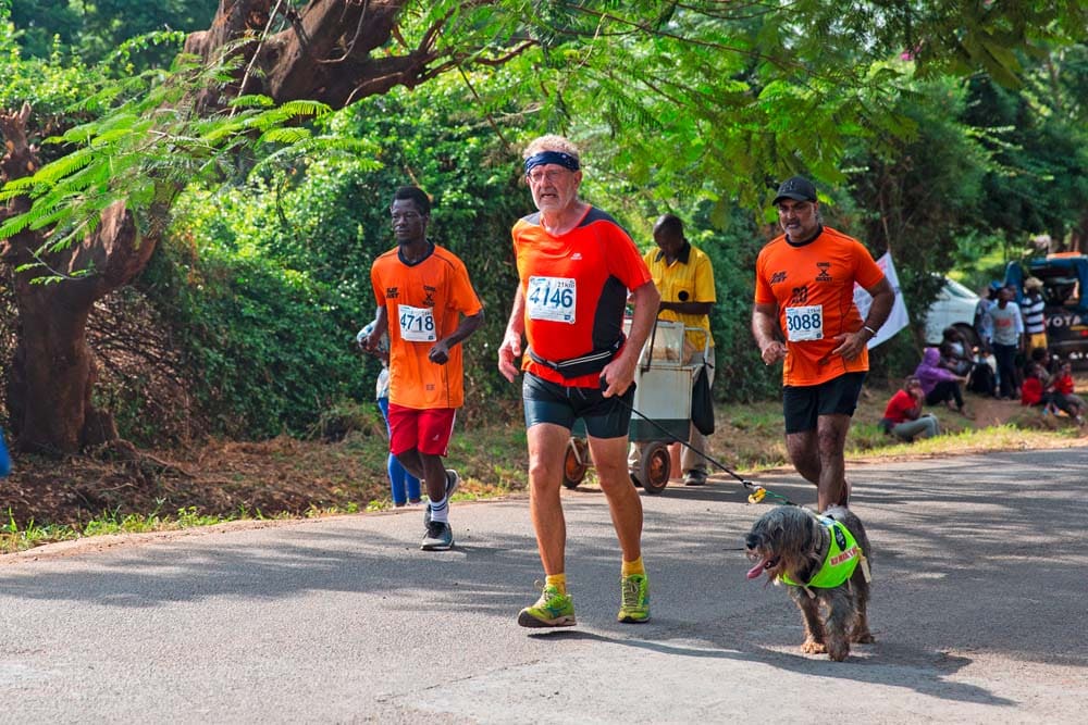 Dewar hatte vor Barney bereits einige Hunde – längere Strecken ist er aber mit keinem von ihnen gelaufen. »Anfangs haben die mich hier für verrückt gehalten – der Weiße, der mit seinem Hund laufen geht.« Während in europäischen Großstädten Jogger mit ihren Hunden bereits fest zum Stadtbild gehören, war er in Daressalam eine Ausnahme. Barney liebte es aber zu laufen und es tat dem Hund gut.