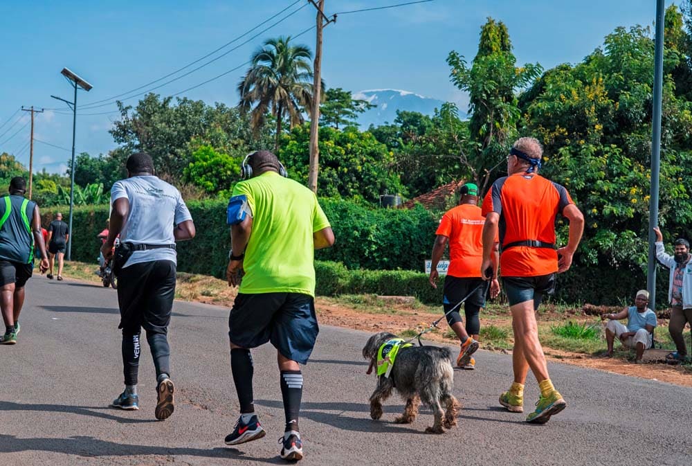 Fellige Tatzen fliegen über den heißen Asphalt. Zwischen tausenden Laufschuhen hält ein Schnauzer Schritt; seine Zunge flattert genauso im Laufwind wie sein zotteliges Fell. Auf seinem neongelben Trikot prangt in blauen Buchstaben sein Name – Barney. Gemeinsam mit tausenden Menschen nimmt der Schnauzer heute am Kilimandscharo-Halbmarathon teil.