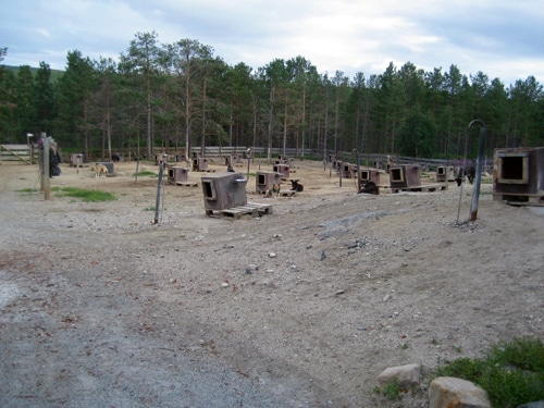 Bei dieser Art der Hundehaltung erscheint mir sogar noch die Methode der Sami, ihren Hunden ein ­großes Holzscheit, bzw. früher einen ­großen Rentierknochen, am Halsband zu befestigen und sie dadurch am Davonlaufen zu hindern, noch human.