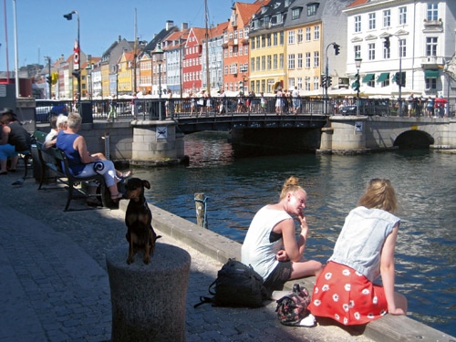 In Stockholm regnet es. Ich lasse das Auto in einem Parkhaus ­stehen und starte mit Nini eine ­Sightseeingtour mit dem Hop On-Hop Off-Bus. Wie in ganz ­Skandinavien ist die Mitnahme von Hunden in Lokale und ­Geschäfte, in denen Lebensmittel verkauft werden, also auch in ­Restaurants, verboten. Daher verstecke ich Nini beim Besuch der bekannten Markthalle, in der vorwiegend schwedische kulinarische Spezialitäten verkauft werden, in ihrer Tasche, denn Hunde müssen auch hier draußen ­bleiben. Was für ein schöner Vorteil, dass Nini so ein Zwerg ist. Nach einem gemütlichen Spaziergang durch Stockholm und um 50,- Euro Parkgebühr ärmer fahren wir auf der Europa­straße Nr. 4 über die Brücke in der Nähe Malmös nach Kopenhagen. Mir fällt auf, dass man wieder den Mond sehen kann, es eine Dämmerung und es wieder Dunkelheit gibt. Es ist vorbei mit taghellen Nächten.