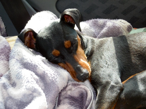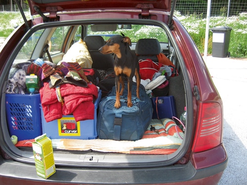 So beginnen Zwergpinscher Nini und ich unsere Fahrt in Wien am 2. Juli 2013. Mit vollgepacktem Auto geht es über deutsche Autobahnen Richtung Dänemark Richtung – laut Navigationssystem – 4.000 km entferntes Nordkap.
