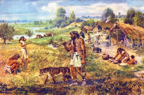 Die Erforschung der Geschichte des Haushundes, im Besonderen seiner Domestikation, ist zugleich ein Eintauchen in die Geschichte des Menschen. Wir sind in der Jungsteinzeit, vor etwa 12.000 Jahren. Es ist die Zeit des Übergangs vom jagdlichen Nomadenleben zur Sesshaftigkeit, und Siedlungen entstehen. Dies deswegen, weil der Mensch nun beginnt, Ackerbau zu betreiben. Seine Ernährungsgrundlage ist nun nicht mehr das, was er zufällig erjagt oder an wildwachsenden Früchten findet, sondern eine geplante Kultivierung von Pflanzen, vor allem von Getreide. Das ermöglicht dem Menschen eine bislang ungekannte Unabhängigkeit, da nun auch eine gewisse Vorratshaltung möglich wird. Mit dieser als „agrikulturelle Revolution“ bezeichneten Veränderung geht auch eine Veränderung in der Ernährungsweise einher. Auf Kosten von Fleisch nimmt der Mensch zunehmend pflanzliche, also stärkehaltige Nahrungsmittel zu sich. Auch die archäologischen Funde von Kochgefäßen aus dieser Zeit zeigen diese Veränderung.
