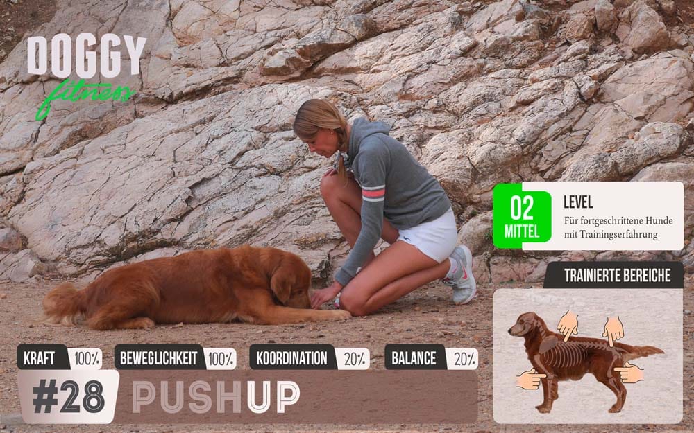 Sie trainieren sehr effektiv die Muskulatur der Vorder- und Hinterläufe, der Schultern, des Nackens und des Rückens. Die Hals- und Rückenmuskulatur wird gestretcht. Dazu ist die Übung ein sehr gutes Koordinations- und Gleichgewichtstraining. Sie ist also ein geniales Ganzkörper-Workout.