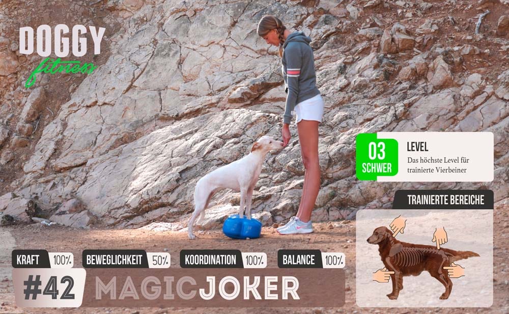 Um eine entsprechende Ausdauer und auch eine gute Muskulatur aufzubauen sowie zu erhalten, können Sie z.B. mit dem Hund joggen. Doch auch hier ist ein langsamer Aufbau wichtig. Für viele gemeinsame Aktivitäten sind zusätzlich eine gute Beweglichkeit, Balance und Koordination nötig. Diese kann man mit gezielten Bewegungsübungen trainieren. Mit einem guten Körpergefühl kann sich Ihr Hund sicher bewegen und wieder zur alten Leistung finden. Im Kasten auf Seite 68 finden Sie zwei praktische Übungen.