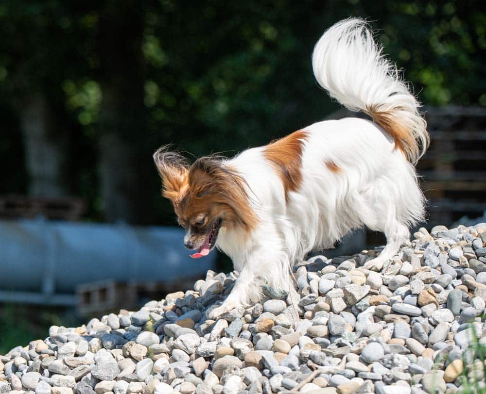 Geländeübergänge finden Sie in der Natur noch und nöcher. Gemeint sind damit z.B. der Übergang von einem Feldweg in eine Wiese, von Teer zu Schotter, von sandigem Untergrund zu Gras. Diesen Untergrundwechsel kann Ihr Hund nicht nur optisch wahrnehmen, sondern natürlich auch über die Sohlen seiner Pfoten. Und dies können Sie sich zunutze machen. So können Sie z.B. das Rückwärtsgehen trainieren. Dafür würden Sie indoor ein sogenanntes Bodentarget etablieren, auf das Ihr Hund seine Hinterpfoten stellen soll. Outdoor lernt Ihr Hund einfach, den Untergrundwechsel als Hilfe für seine Position wahrzunehmen. Gehen Sie folgendermaßen vor: