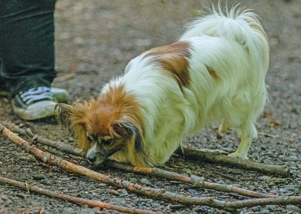 Das bewusste Rückwärtsgehen fordert in hohem Maße die Koordination der Hintergliedmaßen und trainiert zudem im Besonderen den Rücken Ihres Hundes.