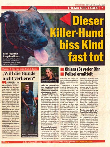 Im September 2009 kommt es zu einem schlimmen Vorfall. Frau Leben erzählt, dass sie selbst nicht zu Hause war. Ihr Sohn, Markus P., war an diesem Abend in Begleitung einer Bekannten, Corinna H. und deren Tochter, Chiara, damals drei Jahre alt. Es war kalt in dieser Nacht, Markus, Corinna und die kleine Chiara waren mit der Bahn aus Wien gekommen. Der junge Mann, Markus, war damals 26 Jahre alt, bat seine Begleiterin mit ihrer Tochter draußen zu warten, denn im Haus waren die Junghunde, wilde, verspielte Pitbulls. Er wollte zuerst die Hunde wegsperren, denn ungestüme junge Hunde und ein kleines Kind sind keine gute Mischung. Es mag an der Kälte gelegen haben, Corinna H. wollte jedenfalls nicht mehr warten und betrat mit ihrer kleinen Tochter den Vorgarten, um ins Haus, ins Warme zu gelangen. Da kam es in der Dunkelheit, es war 21:00, zur Begegnung: Hunde und Kind. Die drei jungen Pitbulls waren den Tag über im Haus gewesen, sie waren voller Energie, das Kind war plötzlich mitten unter den Junghunden und dann floss Blut.