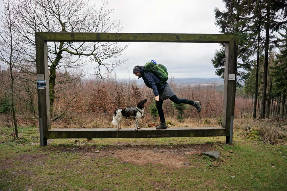 Hund: Für outdooraffine Hunde, die auch gern im Zelt schlafen; das Rudel muss gemeinsam auch Eisenleitern überwinden können; Kondition erforderlich; Infos unter www.forststeig.de