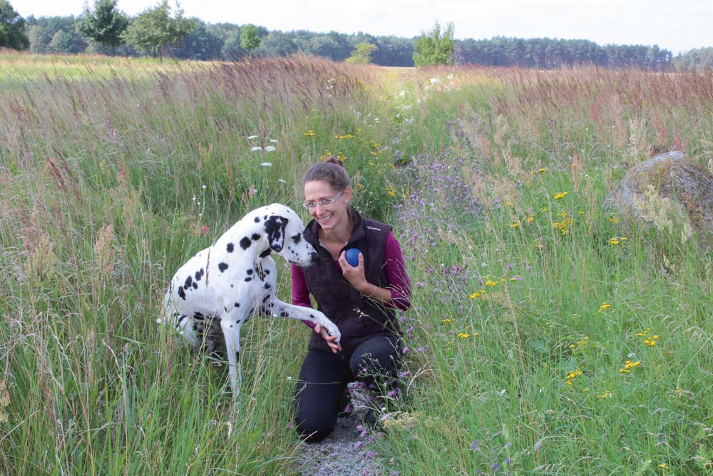 Abschließend hätte ich noch eine Botschaft: Ich fände es schön, wenn man seinen Hund gut kennt, ihn lesen lernt. Wenn man weiß, was er mag und was er nicht mag. Wenn man ihn geistig und körperlich auslastet und der Hund dadurch entspannt durch sein Leben läuft. Denn wenn man seinen Hund gut kennt, erkennt man frühzeitig ent­stehende Krankheiten oder Fehlstellungen und kann dadurch entsprechend schnell reagieren.