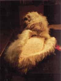 Heute geht es noch einmal um den Tibet Terrier (TT). Zu beachten ist bei dieser Rasse – wie bei vielen anderen mit starker Behaarung auch des Kopfes – , dass durch das eingeschränkte Gesichtsfeld eine Berührung ohne „Vorankündigung" den Hund erschrecken könnte. Ausstellungshunde tragen „Zöpfchen", welche die geforderten langen Kopfhaare im täglichen Leben ein wenig bändigen können. Wer ganz mutig ist und keinen „Showhund" hat oder haben will, kann dem Wuschel auch durch geschicktes Kürzen der Kopf- und Gesichtshaare freie Sicht verschaffen. Die Behauptung, dass die Hunde blind werden, wenn man ihnen die „Gardinen" entfernt, gehört in unseren Breiten in das Reich der Märchen. In ihrer Heimat jedoch schützen die Haare die Augen des TT sehr wohl in dem rauen, windigen Klima vor Sandkörnern.