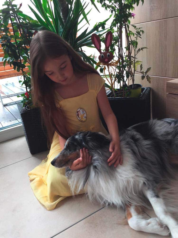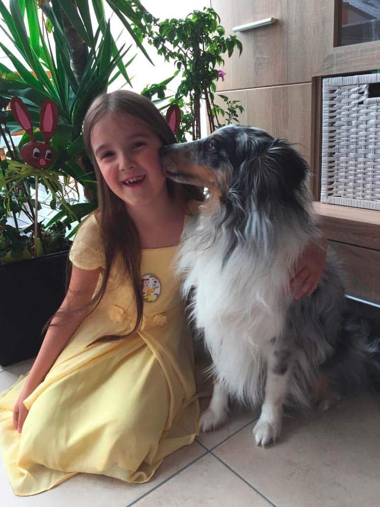 Lena ist mittlerweile zehn Jahre alt, und mit Earl an ihrer Seite hat sich vieles für sie und ihre Eltern verbessert. »Bevor Earl zu uns kam, hat Lena kaum gesprochen und war sehr in sich gekehrt. Im Freien lief Lena immer davon, und auch Hand-geben war unmöglich«, erzählt Katrin Huber, die Mutter von Lena, vom Alltag, bevor Earl zur Familie kam. »Ängste, die tagsüber entstehen, zeigen sich bei Lena nachts durch unruhigen Schlaf. Hier lässt sie keinen Körperkontakt zu. Lediglich Earl darf sich zu ihr legen. Er legt sich auf sie und schleckt ihre Hände bis sie sich beruhigt hat. Außerdem hilft Earl Lena in neuen Situationen und gibt ihr Halt. Er hilft ihr, wenn sie sich unsicher fühlt oder Angst hat. Seit sie und Earl mit der Leine verbunden sind, sind Spaziergänge auch kein Problem mehr«, beschreibt die Mutter die vielen Bereiche, in denen Earl ihrer Lena eine große Stütze ist. »Earl hat Lena geholfen, offener zu werden. Mittlerweile geht sie offen in die Welt, und mit Earl an ihrer Seite sind auch größere Veranstaltungen wie Erstkommunion kein Problem.«