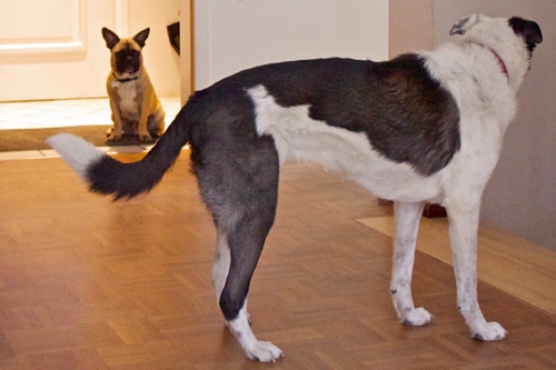 Neulich zum Beispiel, als dieser notgeile französische Bully immer wieder versucht hat, bei mir aufzureiten. Der Bully bekam erst mal einen Schwall Wasser ins Gesicht, danach war das Thema durch und ich konnte mich mit einem Seufzer der Erleichterung und einem bewundernden Blick zum Frauchen wieder meinen Hobbys zuwenden. Da ist doch in der Mensch-Hund-Beziehung auch für den Hund alles in Ordnung, oder? Ich jedenfalls kann nicht behaupten, dass ihr deutliches Auftreten und manchmal sogar eine gewisse Körperlichkeit, wie ein Rempler, unsere Beziehung in irgendeiner Weise beeinträchtigt haben.