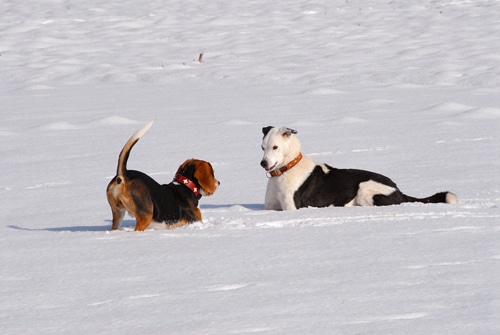 Auf der anderen Seite meine Wenigkeit, ein prächtiger 3-jähriger Beaglerüde (entschuldigen Sie bitte mein Eigenlob, aber man muss die Dinge schließlich beim Namen nennen), der mit allen vier Pfoten fest im Leben steht und genau weiß, was er will. Dazu muss man wissen, dass meinesgleichen seit Jahrhunderten drauf selektiert wurde, eine gewisse Beharrlichkeit an den Tag zu legen und extrem eigenständig zu sein. Man stelle sich mal vor, wir Meutehunde würden auf der Schleppjagd nach fünf Minuten sagen: „Keinen Bock mehr, ich gehe nach Hause", oder „Herrchen, wo ist die Fährte? Ist das auch die richtige?". Also sind wir per se schon mal Hunde mit eigenem Kopf und einer unglaublichen Ausdauer. Auch eine gewisse Härte war bei uns schon immer Zuchtziel, denn eine Meute aus Piccolos, die bei zwei Brennnesseln oder fünf Dornen am Wegesrand sagen, „da kann ich nicht vorbei laufen, das könnte gefährlich sein und weh tun", wäre auf der Jagd sicherlich kein Gewinn – außer für die Hasen.