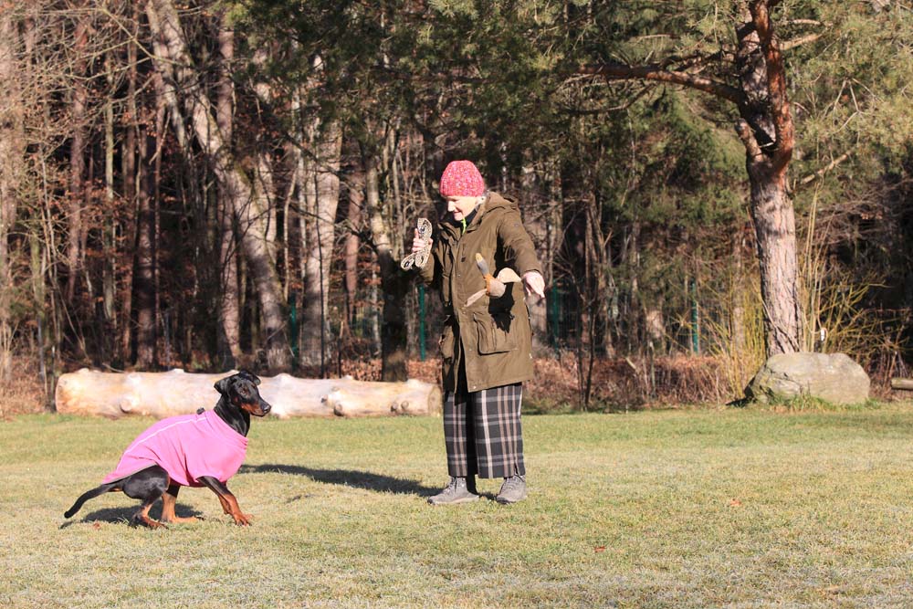 Dadurch, dass man nach der Einwirkung sofort in den positiven Modus geht, (z.B. in der Hocke mit dem Hund entweder schmust oder ihm Futter gibt oder mit ihm freudig umherhüpft), werden mit der Zeit die Ablenkungsreize zum Auslöser dafür, dass der Hund erwartungsvoll Kontakt zu seinem Menschen aufnimmt und sich somit eine Reglementierung erübrigt.