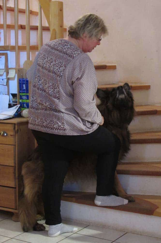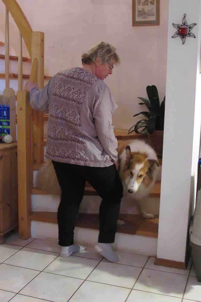 • Den Halter körperlich unterstützen (vom Treppensteigen abhalten oder stützen).