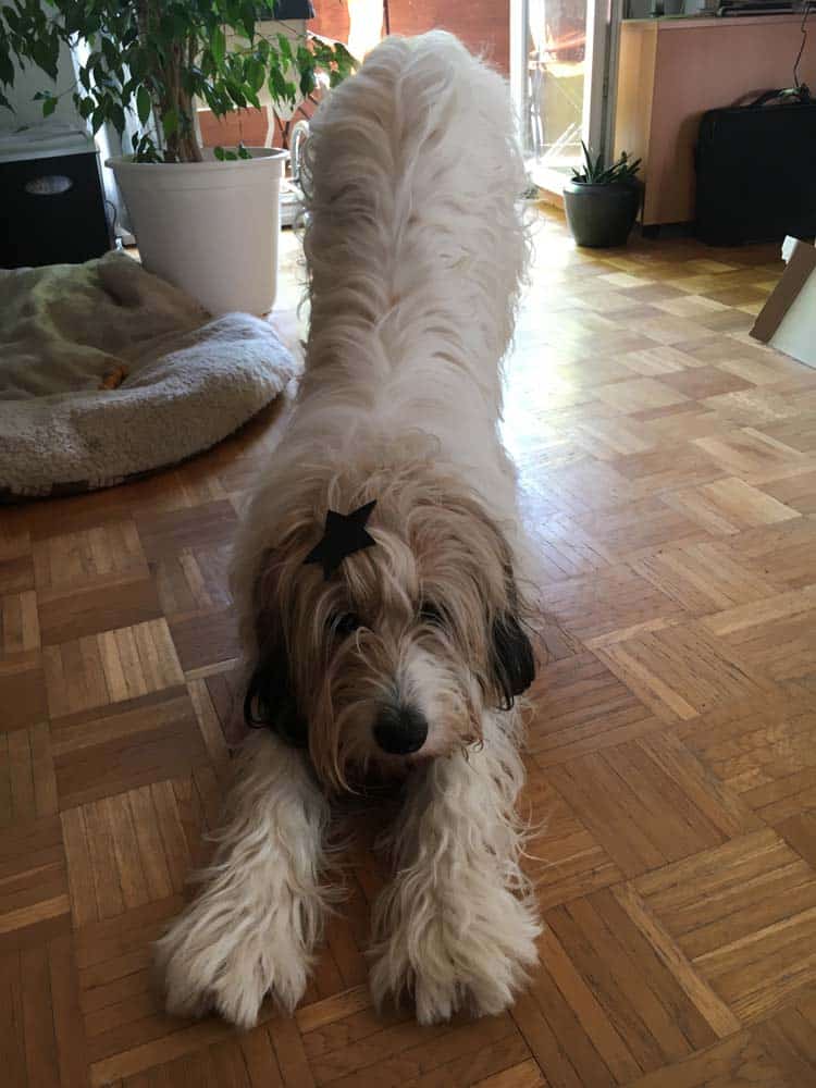 Unser Hund Newton ist ein Couch-Potato. Streng genommen ist er ein Boden-Potato, weil er sich nicht auf die Couch legen darf, aber wir wollen ja nicht kleinlich sein. Als Couch-Potato kennt sich Newton prima mit Entspannung, Entschleunigung und – böse Zungen würden behaupten – mit Trägheit aus. Er hat ein paar bevorzugte Plätze zum Herumlümmeln. Am liebsten liegt er in der Wohnung vor der Balkontüre, draußen im Garten oder im Büro hinter dem Stuhl meines Mannes. Newton macht sich dann gaaanz lang und fläzt sich gemütlich an die Wand. Dort hält unser zum Glück sehr entspannter Hund seine mehrstündige Siesta. Morgens steht er als Letzter von uns allen auf und erscheint, wenn überhaupt, erst am Frühstückstisch, nachdem er die Kaffeemaschine gehört hat. Dann weiß Newton, dass das Frühstück fertig ist und es sich dann erst lohnt, um etwas Käse zu betteln, sich niedlich anzustellen und diesen unglaublichen Hundeblick aufzusetzen, mit dem er mich und den Rest der Familie jedes Mal um seine Pfote wickelt.