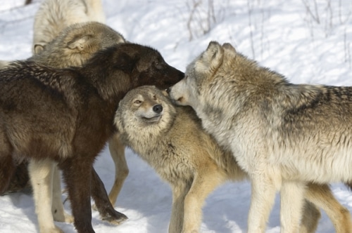 Bei Hundeartigen, deren Rudel- und Familienstrukturen vielmehr auf Kooperation bei der Nahrungssuche und beim Nahrungserwerb angelegt sind, wäre eine solche Vorgehens­weise auch wenig produktiv. Ein ranghoher Wolf, der sich zwar selbst am toten Hirsch den Bauch vollgeschlagen hat, jedoch nur ein Rudel hungriger und dementsprechend geschwächter Mitstreiter hinter sich wüsste, könnte weder gegen das stärkere Nachbar­rudel, noch gegen den Tiger, den Braunbären oder andere überlegene Konkurrenzarten bestehen.